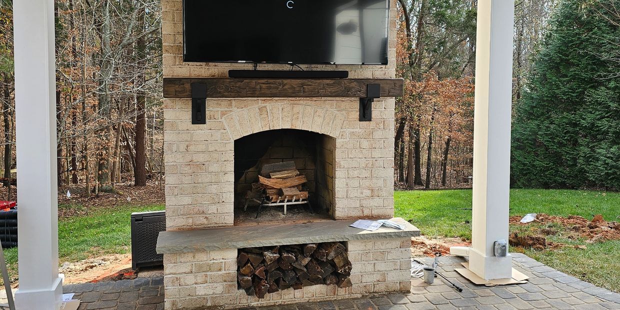 When it comes to size and style of an outdoor fireplace has endless designs and materials to choose from. From a tiny stone fireplace nestled on a patio, to a large brick curved fireplace that incorporates seating walls, wood storage and even a pizza oven. No matter which style you prefer, we can meet with you to plan the perfect fireplace for your backyard setting