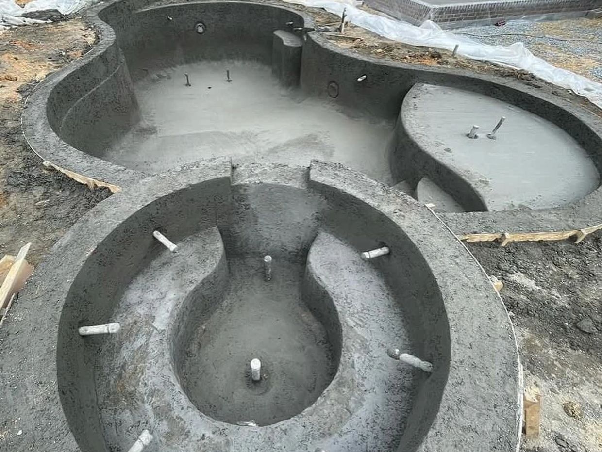The next step is shooting the concrete (also known as shotcrete or gunite) which transforms a muddy crevice into the beginnings of an inground swimming pool. This is also when we build elaborate waterfalls, grottos, benches or any custom features.The pool shell needs to be watered 2 hors after the gunite or shotcrete has been completed and this process of watering needs to be done everyday, twice a day for the first two weeks then once a day for the remainder of the curing process. We usually allow 30-45 days for the pool shell to cure before moving to the next step this curing process is critical to the lifetime expectancy of your pool shell. While curing, we turn our attention to other phases of construction, such as long plumbing & electrical installation for the pool equipment.
